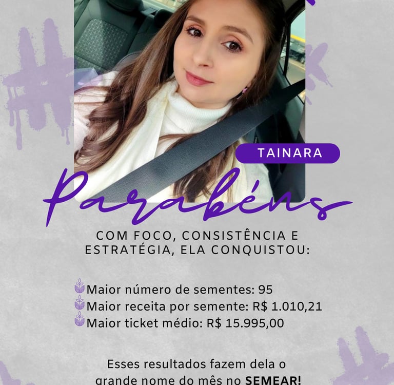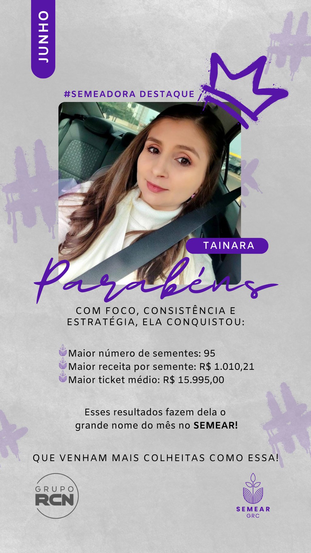 Tainara foi o destaque do mês de junho. Seu notável desempenho a colocou como a semeadora do mês!